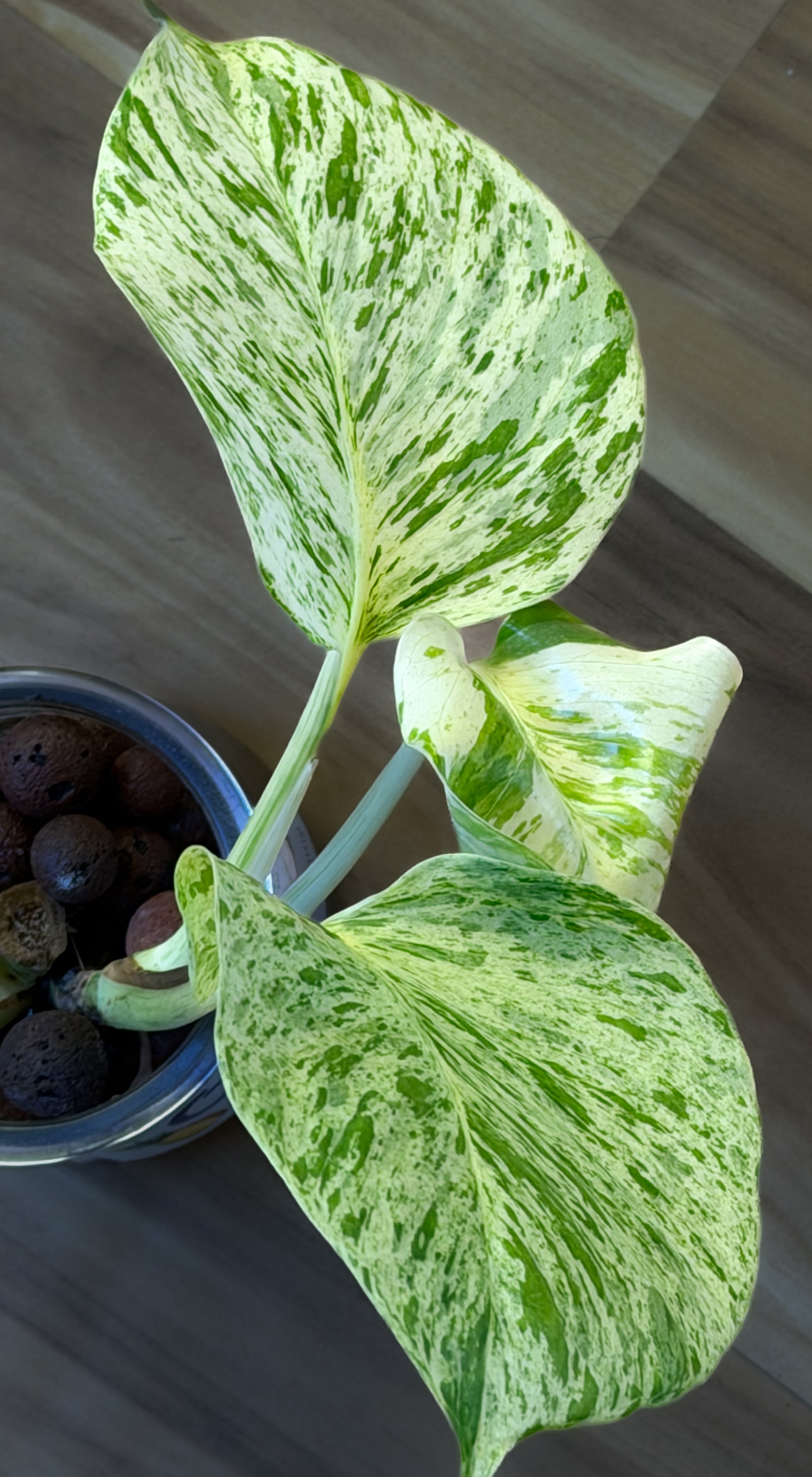 Very rare! Have you ever seen a pothos so large?! One large mature leaf with 3 new sprouts. (Chunky hand for size)